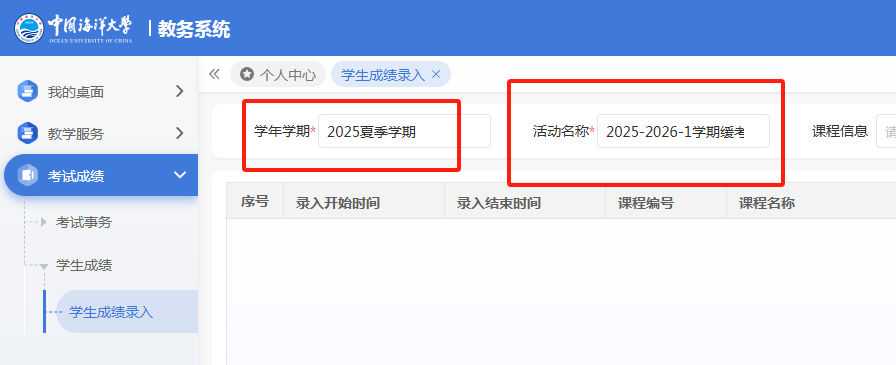 比如,2025年夏季学期,选择“2025-2026-1学期缓考成绩录入”,或者“2025-2026-1学期补考成绩录入”。