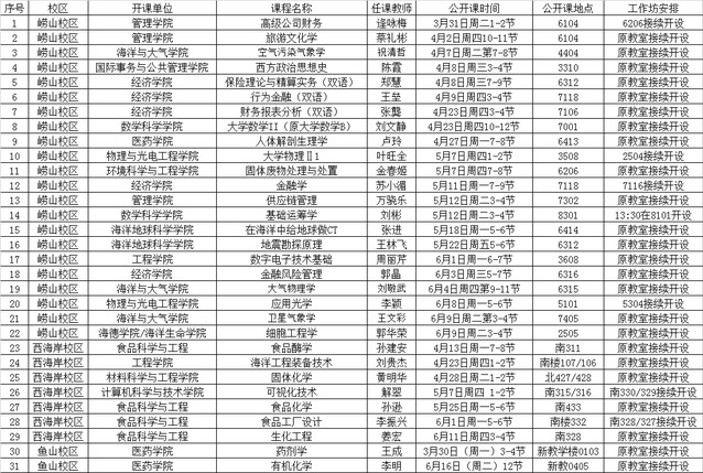 为发挥课程思政示范课程的示范引领作用,带动全校教师充分发掘课程思政元素,全面提升课程思政建设水平,学校定于2024-2026年开展“20-30-50”计划,每学期遴选部分校级课程思政示范课程讲授公开课、开设工作坊。本学期公开课及其工作坊安排如下,欢迎全校师生观摩交流!